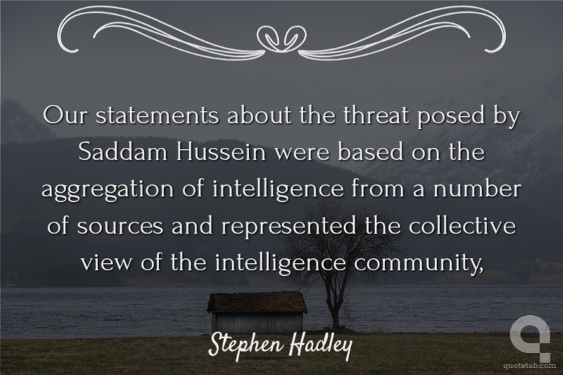 an issue of our intelligence, and obviously we need to do a better job of our intelligence. Stephen Hadley