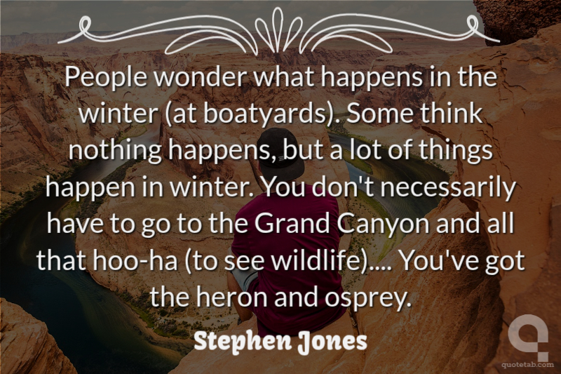 People wonder what happens in the winter (at boatyards). Some think nothing happens, but a lot of things happen in winter. You don't necessarily have to go to the Grand Canyon and all that hoo-ha (to see wildlife).... You've got the heron and osprey. Stephen Jones