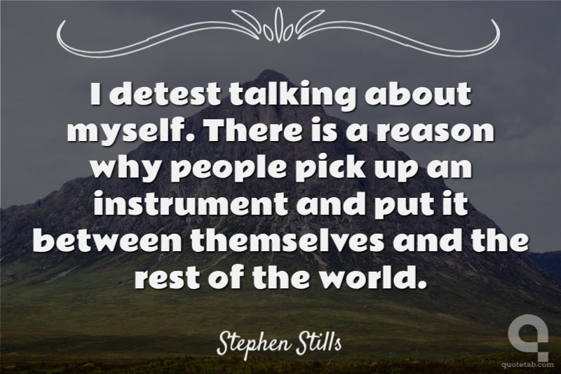 I detest talking about myself. There is a reason why people pick up an instrument and put it between themselves and the rest of the world. Stephen Stills