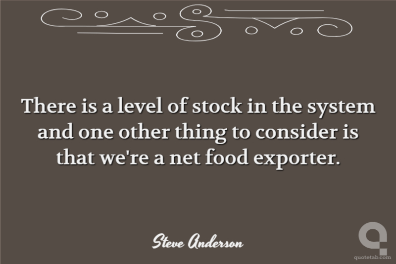 There is a level of stock in the system and one other thing to consider is that we're a net food exporter. Steve Anderson