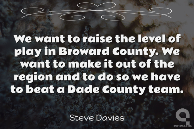 We want to raise the level of play in Broward County, ... We want to make it out of the region and to do so we have to beat a Dade County team. Steve Davis