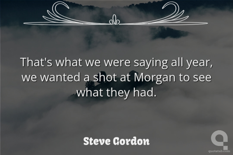 That's what we were saying all year, we wanted a shot at Morgan to see what they had. Steve Gordon