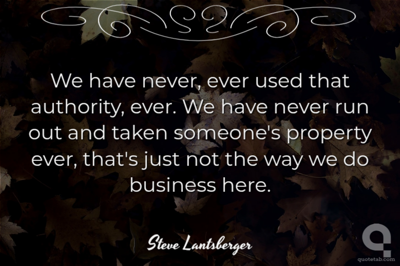 We have never, ever used that authority, ever. We have never run out and taken someone's property ever, that's just not the way we do business here. Steve Lantsberger