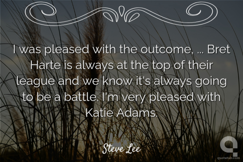 I was pleased with the outcome, ... Bret Harte is always at the top of their league and we know it's always going to be a battle. I'm very pleased with Katie Adams. Steve Lee
