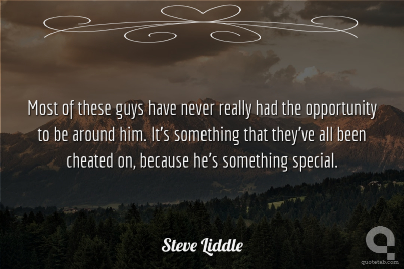 Most of these guys have never really had the opportunity to be around him. It's something that they've all been cheated on, because he's something special. Steve Liddle