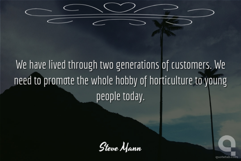 We have lived through two generations of customers. We need to promote the whole hobby of horticulture to young people today. Steve Mann