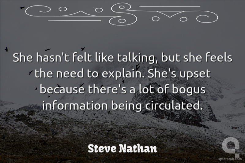 She hasn't felt like talking, but she feels the need to explain. She's upset because there's a lot of bogus information being circulated. Steve Nathan