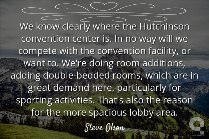 We know clearly where the Hutchinson convention center is. In no way will we compete with the convention facility, or want to. We're doing room additions, adding double-bedded rooms, which are in great demand here, particularly for sporting activities. That's also the reason for the more spacious lobby area. Steve Olson