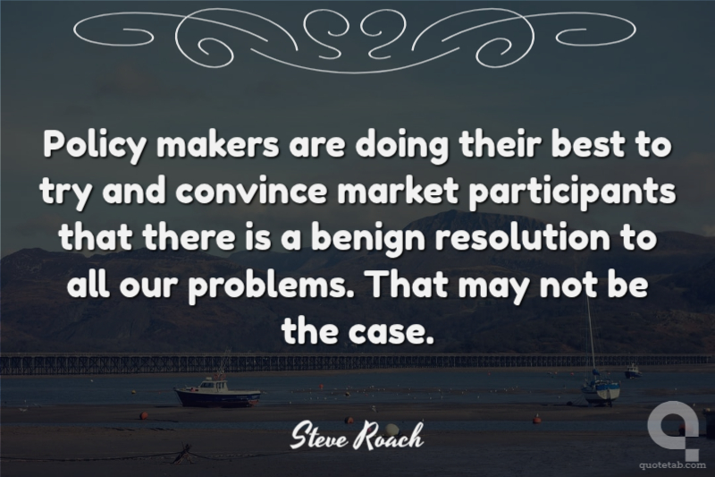 Policy makers are doing their best to try and convince market participants that there is a benign resolution to all our problems. That may not be the case. Steve Roach