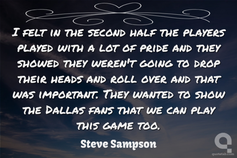 I felt in the second half the players played with a lot of pride and they showed they weren't going to drop their heads and roll over and that was important. They wanted to show the Dallas fans that we can play this game too. Steve Sampson