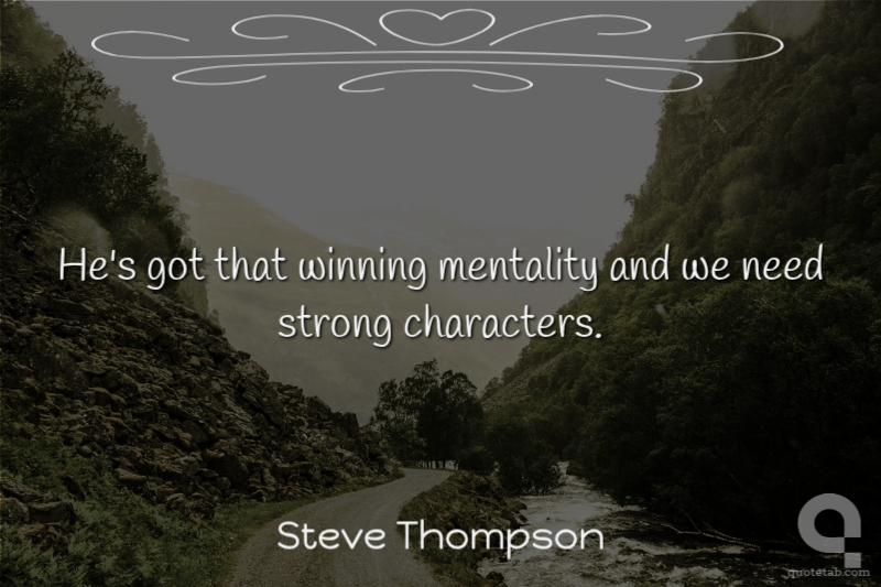 He's got that winning mentality and we need strong characters. Steve Thompson