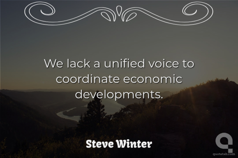 We lack a unified voice to coordinate economic developments. Steve Winter