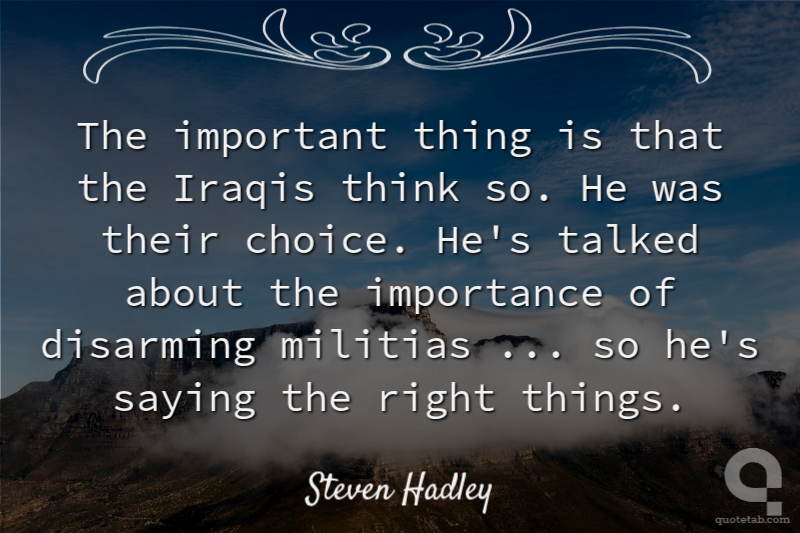 The important thing is that the Iraqis think so. He was their choice. He's talked about the importance of disarming militias ... so he's saying the right things. Steven Hadley
