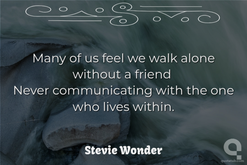 Many of us feel we walk alone without a friend Never communicating with the one who lives within. Stevie Wonder