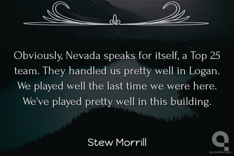 Obviously, Nevada speaks for itself, a Top 25 team. They handled us pretty well in Logan. We played well the last time we were here. We've played pretty well in this building. Stew Morrill