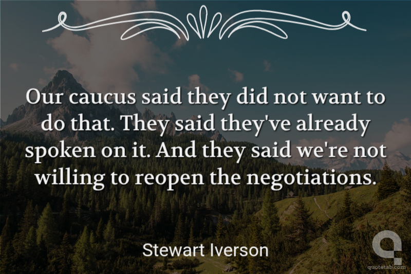 Our caucus said they did not want to do that. They said they've already spoken on it. And they said we're not willing to reopen the negotiations. Stewart Iverson