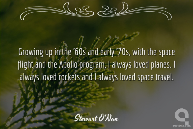 Growing up in the '60s and early '70s, with the space flight and the Apollo program, I always loved planes. I always loved rockets and I always loved space travel. Stewart O'Nan