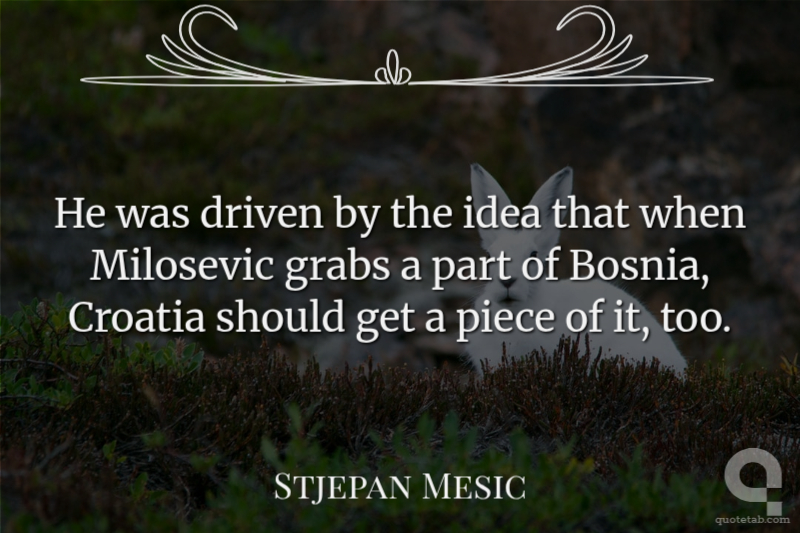 He was driven by the idea that when Milosevic grabs a part of Bosnia, Croatia should get a piece of it, too. Stjepan Mesic