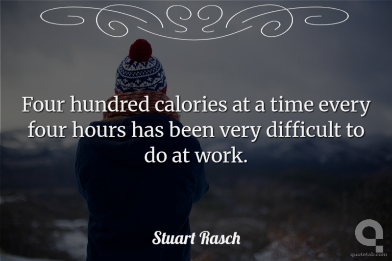 Four hundred calories at a time every four hours has been very difficult to do at work. Stuart Rasch