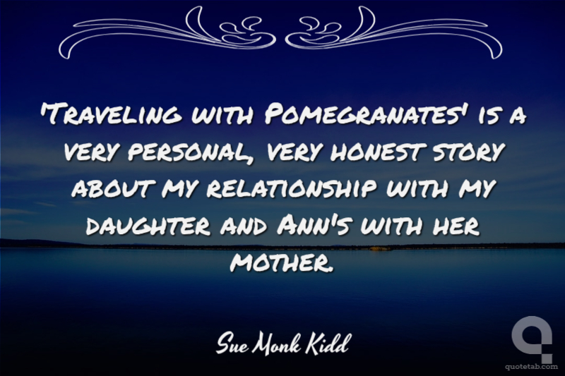 'Traveling with Pomegranates' is a very personal, very honest story about my relationship with my daughter and Ann's with her mother. Sue Monk Kidd