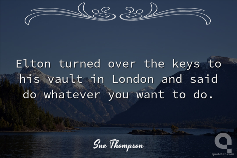 Elton turned over the keys to his vault in London and said do whatever you want to do. Sue Thompson