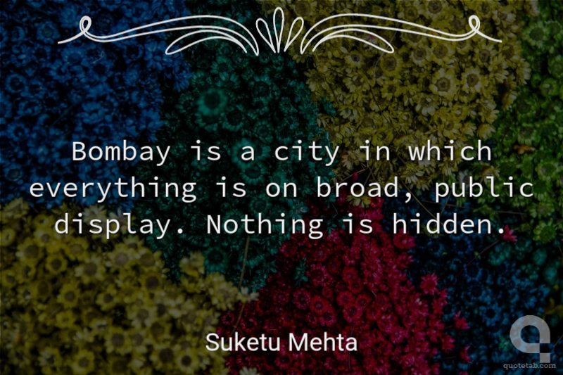 Bombay is a city in which everything is on broad, public display. Nothing is hidden. Suketu Mehta