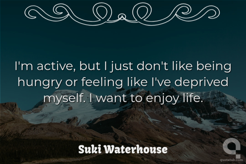 I'm active, but I just don't like being hungry or feeling like I've deprived myself. I want to enjoy life. Suki Waterhouse