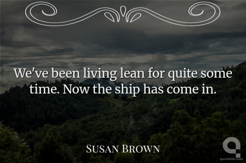 We've been living lean for quite some time. Now the ship has come in. Susan Brown