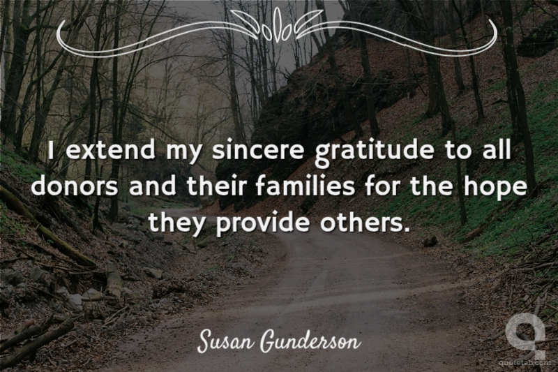 I extend my sincere gratitude to all donors and their families for the hope they provide others. Susan Gunderson