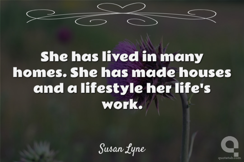 She has lived in many homes. She has made houses and a lifestyle her life's work. Susan Lyne