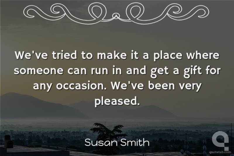 We've tried to make it a place where someone can run in and get a gift for any occasion. We've been very pleased. Susan Smith