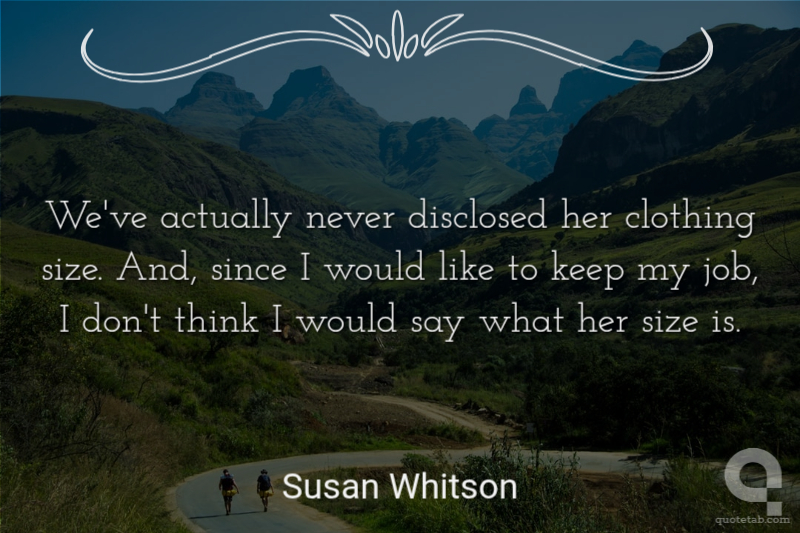 We've actually never disclosed her clothing size. And, since I would like to keep my job, I don't think I would say what her size is. Susan Whitson