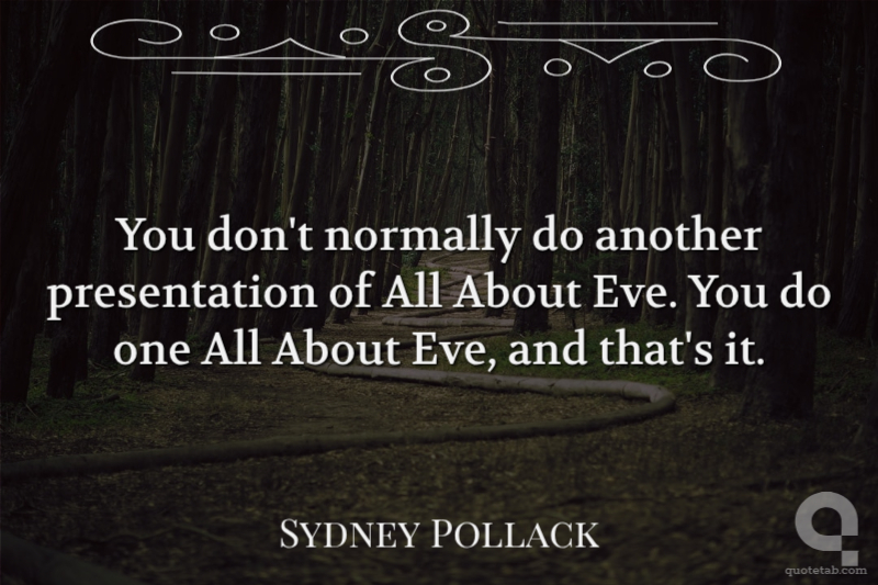 Sydney Pollack You don't normally do another presentation of All About Eve. You do one All About Eve, and that's it.
