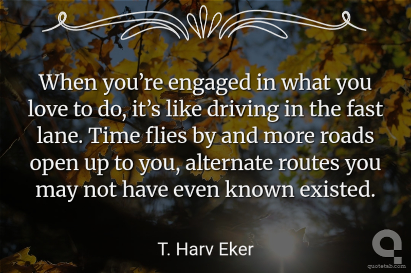 When you’re engaged in what you love to do, it’s like driving in the fast lane. Time flies by and more roads open up to you, alternate routes you may not have even known existed. T. Harv Eker