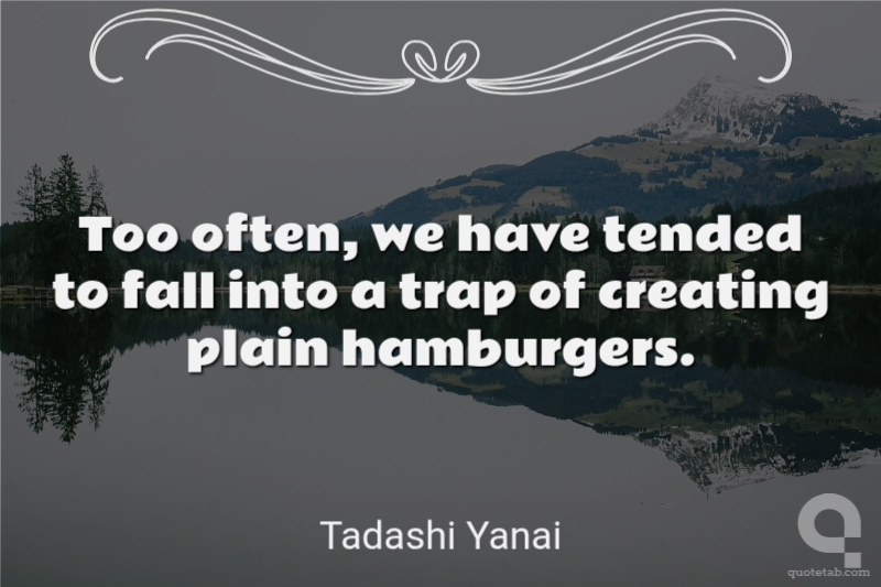 Too often, we have tended to fall into a trap of creating plain hamburgers. Tadashi Yanai