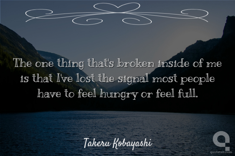The one thing that's broken inside of me is that I've lost the signal most people have to feel hungry or feel full. Takeru Kobayashi