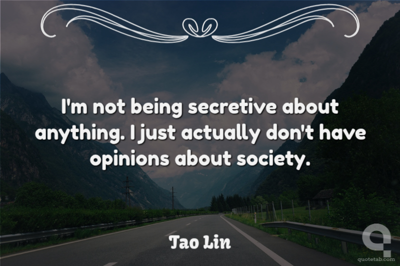 I'm not being secretive about anything. I just actually don't have opinions about society. Tao Lin