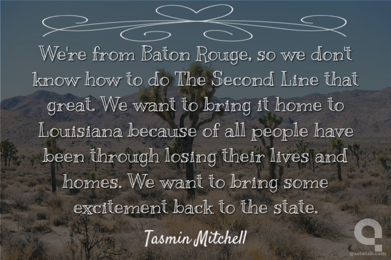 We're from Baton Rouge, so we don't know how to do The Second Line that great. We want to bring it home to Louisiana because of all people have been through losing their lives and homes. We want to bring some excitement back to the state. Tasmin Mitchell
