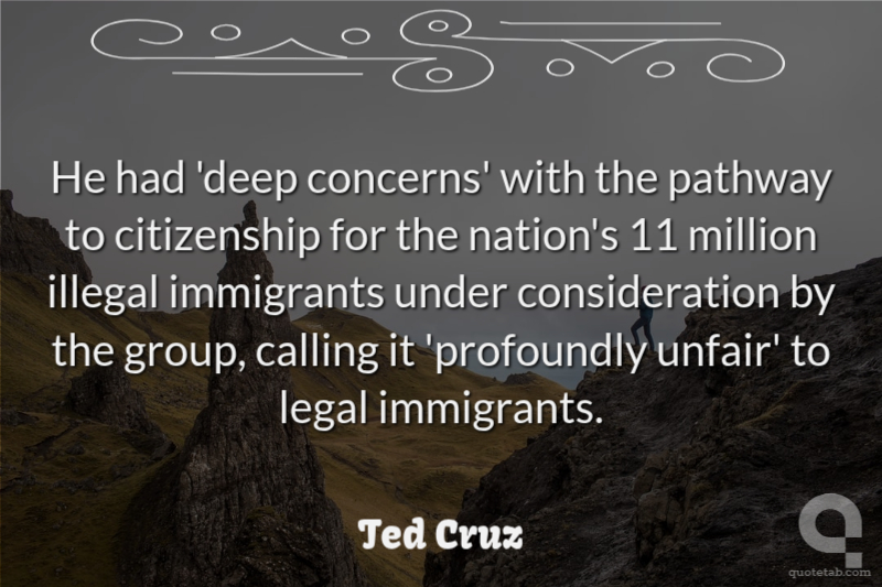 He had 'deep concerns' with the pathway to citizenship for the nation's 11 million illegal immigrants under consideration by the group, calling it 'profoundly unfair' to legal immigrants. Ted Cruz