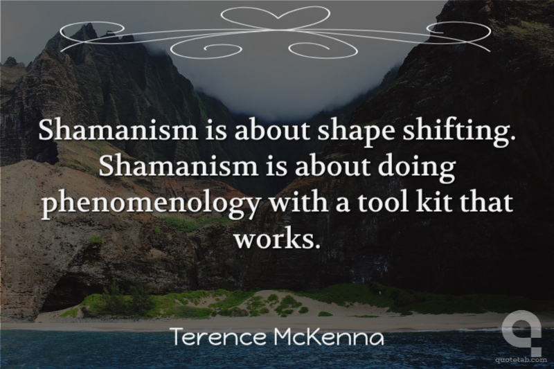 Shamanism is about shape shifting. Shamanism is about doing phenomenology with a tool kit that works. Terence McKenna