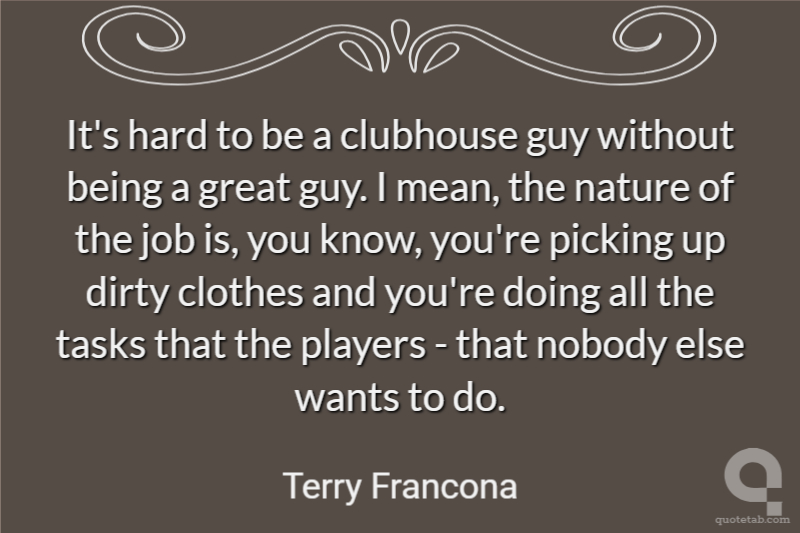 It's hard to be a clubhouse guy without being a great guy. I mean, the nature of the job is, you know, you're picking up dirty clothes and you're doing all the tasks that the players - that nobody else wants to do. Terry Francona