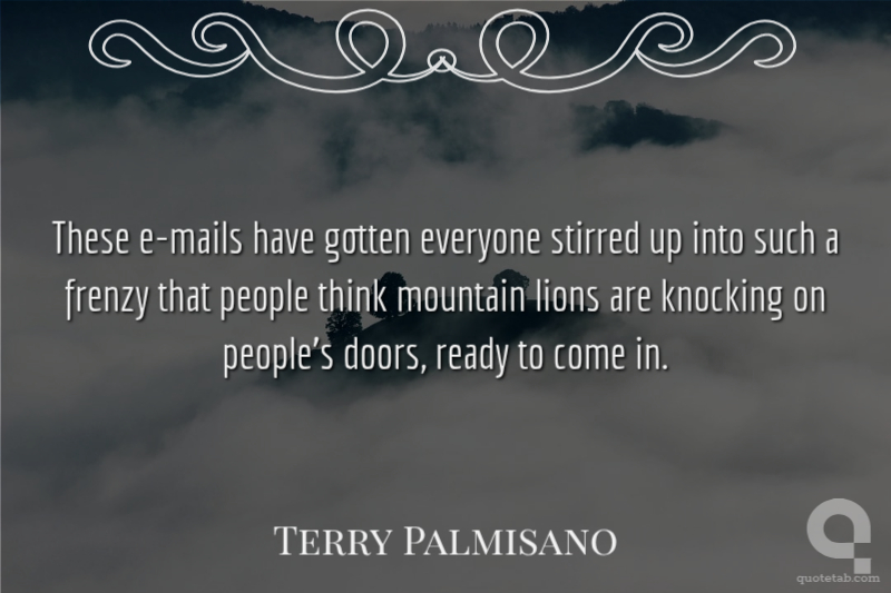 These e-mails have gotten everyone stirred up into such a frenzy that people think mountain lions are knocking on people's doors, ready to come in. Terry Palmisano