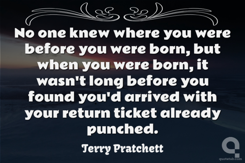 No one knew where you were before you were born, but when you were born, it wasn't long before you found you'd arrived with your return ticket already punched. Terry Pratchett