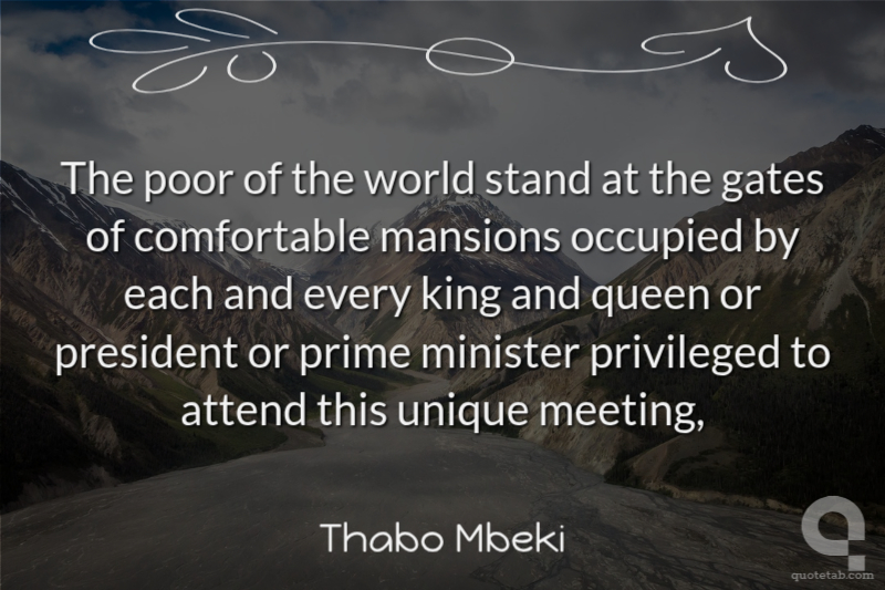 The poor of the world stand at the gates of comfortable mansions occupied by each and every king and queen or president or prime minister privileged to attend this unique meeting, Thabo Mbeki