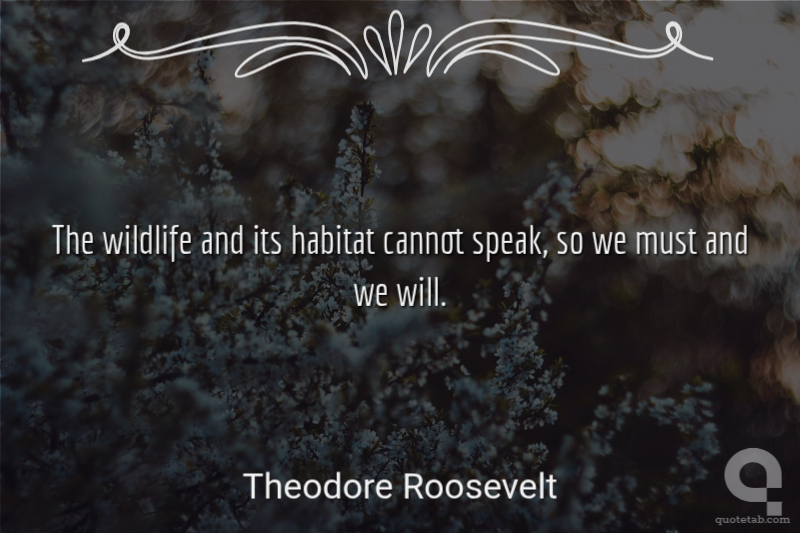 The wildlife and its habitat cannot speak, so we must and we will. Theodore Roosevelt