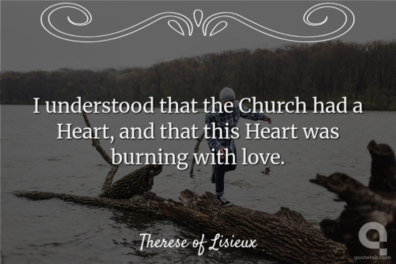 I understood that the Church had a Heart, and that this Heart was burning with love. Therese of Lisieux