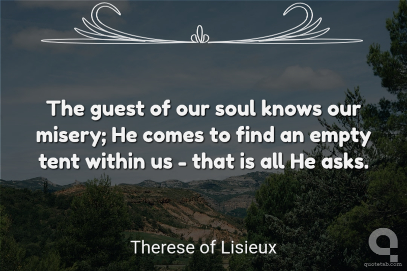 The guest of our soul knows our misery; He comes to find an empty tent within us - that is all He asks. Therese of Lisieux