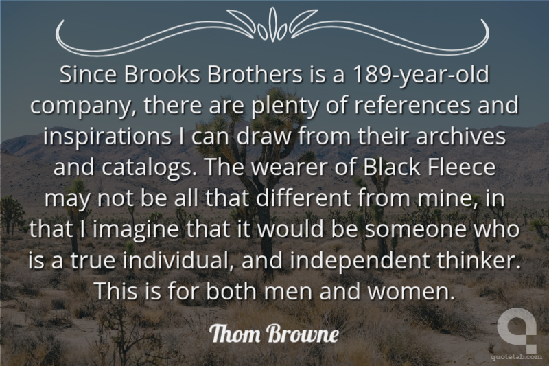 Since Brooks Brothers is a 189-year-old company, there are plenty of references and inspirations I can draw from their archives and catalogs. The wearer of Black Fleece may not be all that different from mine, in that I imagine that it would be someone who is a true individual, and independent thinker. This is for both men and women. Thom Browne
