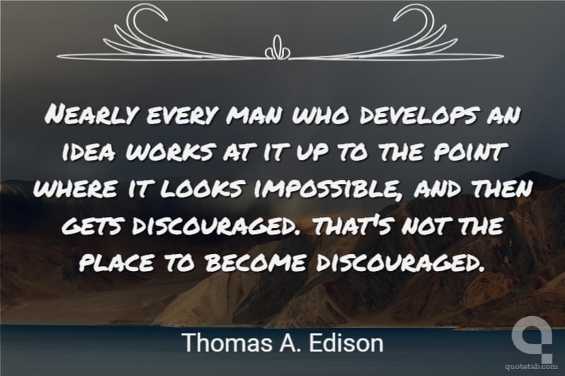 Nearly every man who develops an idea works at it up to the point where it looks impossible, and then gets discouraged. that's not the place to become discouraged. Thomas A. Edison