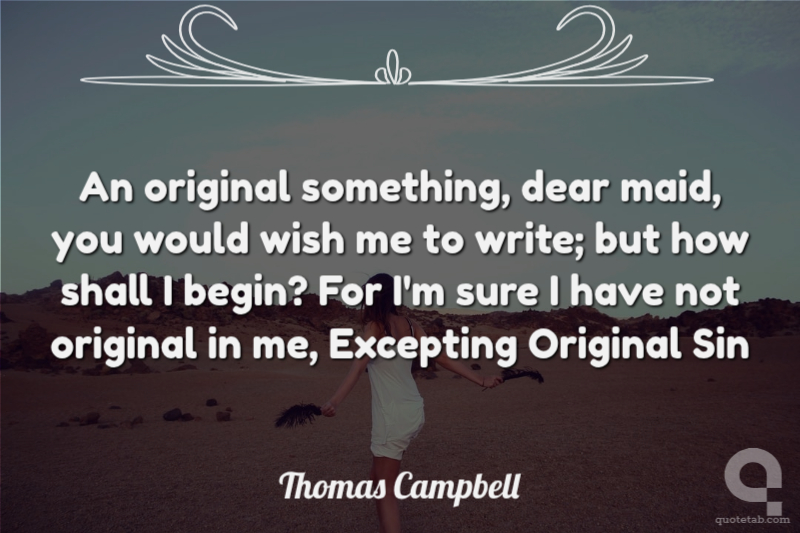 An original something, dear maid, you would wish me to write; but how shall I begin? For I'm sure I have not original in me, Excepting Original Sin Thomas Campbell